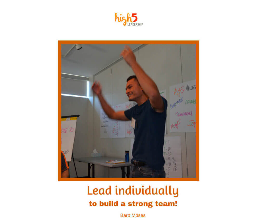 Do you want to build stronger teams with stronger individual team members? That’s what we do! Let’s talk. You can reach me at barb@high5leadership.com.