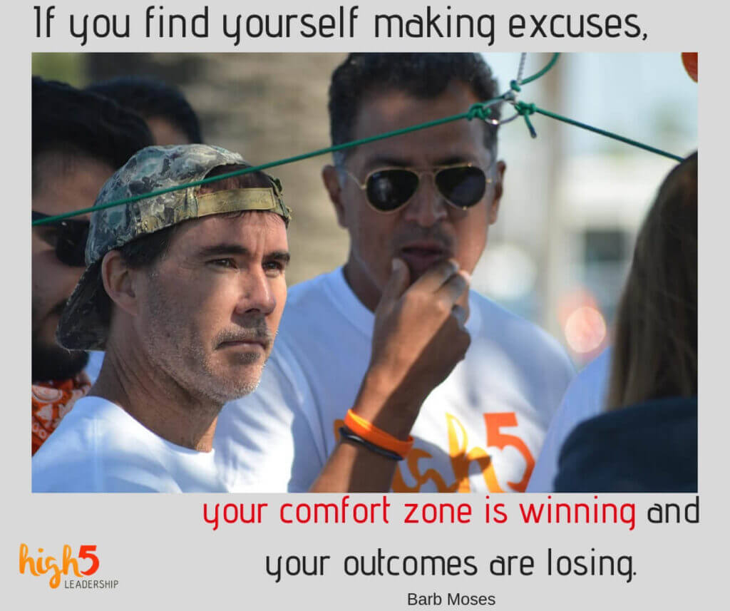 Are you ready to give up YOUR excuses and see what’s really possible? Give us a weekend and we will give you a lifetime. Send me an email at barb@high5leadership.com to schedule a time to talk.