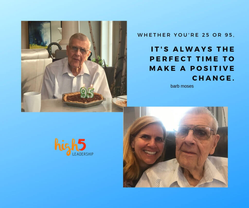 I just spent five days in Minnesota with my family, and we celebrated my dad’s 95th birthday. He asked me if I thought he had changed since my last visit. I told him I felt he had been holding steady for the last few years. Although his eyesight is getting worse, he continues to amaze me, so it made sense to share his secret to his long life.