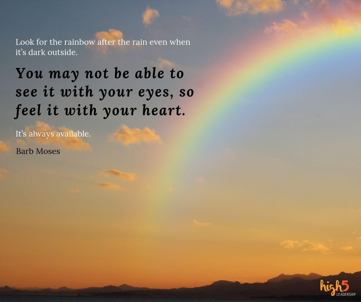 Look for the rainbow after the rain even when it’s dark outside.