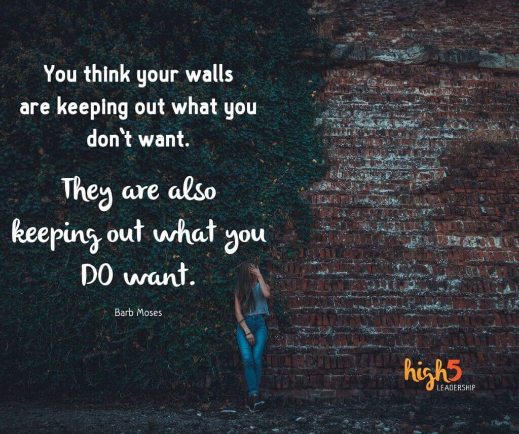 Would you like to build stronger relationships? Are you willing to accept responsibility for your relationships? It all begins with you! If you’d like to see a different perspective, let’s talk. There’s no cost and no strings – no walls required. Email me at barb@high5leadership.com to schedule your call.